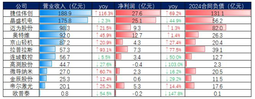 但来到2024年,随着行业内卷式竞争延续,卖铲人的日子也开始苦了起来。结合2024年的年报,头部企业增收不增利成为普遍现象,半数公司在利润端都出现了下滑,但也有诸如捷佳伟创拉普拉斯等公司,依旧维持着强劲增长。