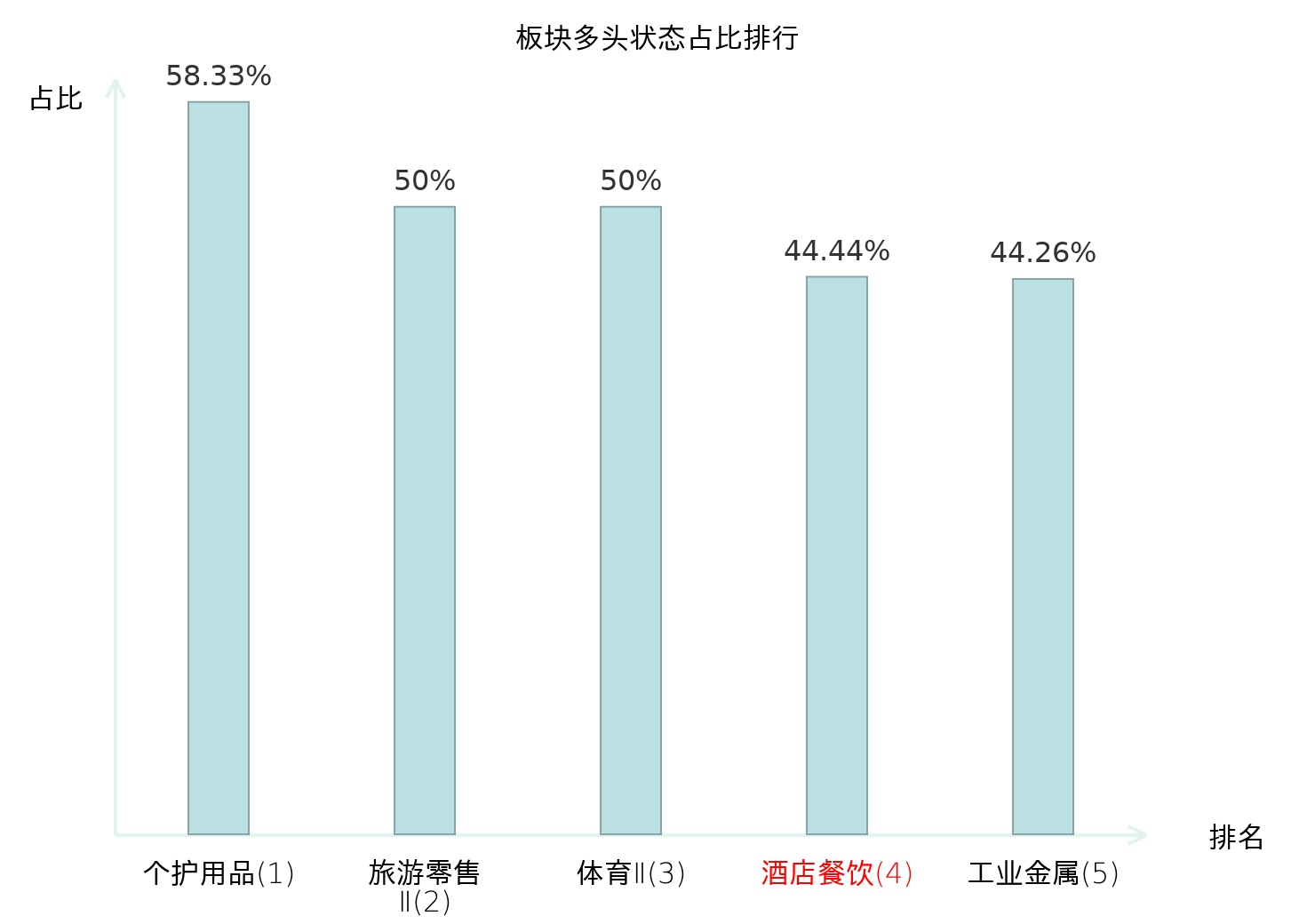 全市场所有行业板块中主力多头状态占比排名中,个护用品板块位居第一。非白酒板块名次提升最快,较昨日上升65位。