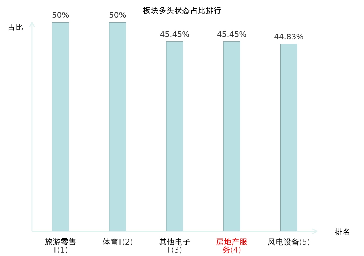 全市场所有行业板块中主力多头状态占比排名中,旅游零售Ⅱ板块位居第一。其他家电Ⅱ板块名次提升最快,较昨日上升112位。