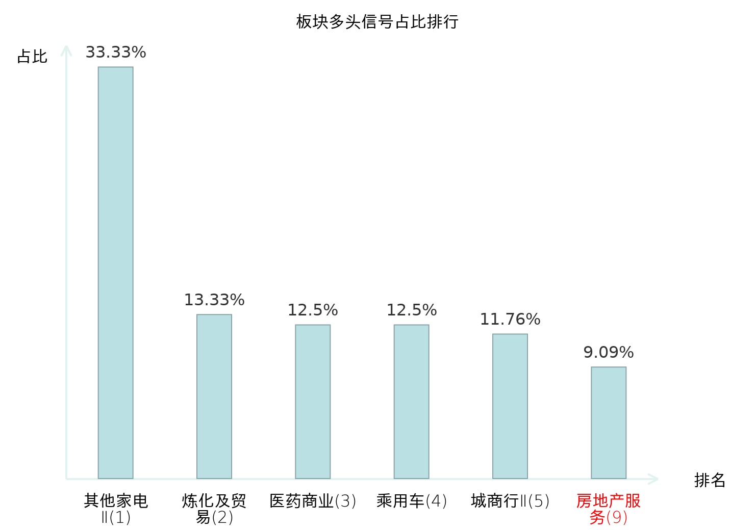 从主力宝信号数据分析,中天服务所属的房地产服务板块中共有1只股票发出主力多头信号,主力多头信号占比在全行业中排名第9位,较昨日上升104位。较高的排名表明主力当日买入意愿较强,此次排名上升可能反映了主力对该板块态度的积极变化。全市场所有行业板块中主力多头信号占比排名中,其他家电Ⅱ板块位居第一。其他家电Ⅱ板块名次提升最快,较昨日上升128位。这些变动揭示了不同行业间主力资金偏好的变化,为投资者提供了重要的市场参考。