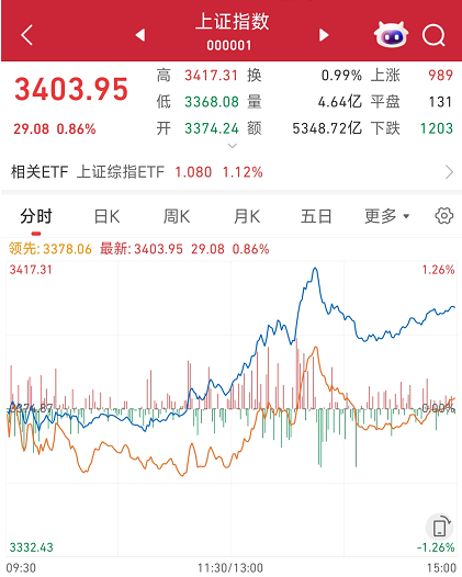 1、指数突破3400点压力位,今日1300亿市值的广发证券携弘业期货冲板,带动整个大金融,尝试突破3400点,无奈市场没有放量,冲高回落;尾盘锦龙股份再次冲板,成功带动指数站上3400点。