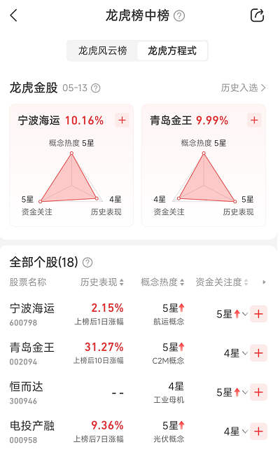 另一只榜中榜选出的龙虎金股—宁波海运,则更是准备直接一字到头,情绪来袭的时候,连板个股也会越来越多。
