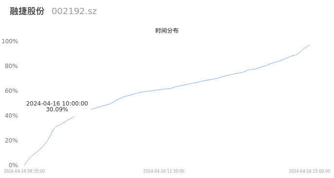 002192融捷股份2024年04月16日成交8.83万手,成交金额3.18亿元,相较昨日放量1.36万手,换手率3.41%,成交清淡。
