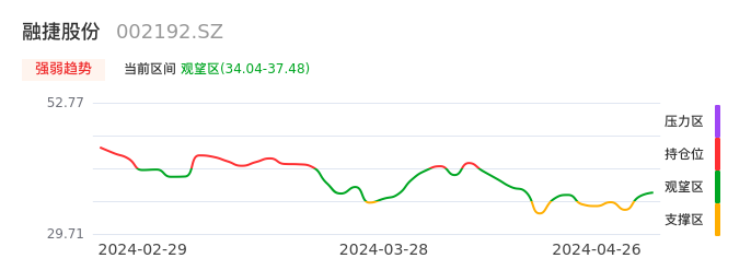 我们来看一下该股的九方特色指标强弱趋势的情况:融捷股份近日从支撑区回到观望区。股价经过前期快速下跌后已经出现止跌迹象。下跌动能有所衰竭,股价目前处于反弹阶段,后续重点关注能否站上多空分界点:37.48元。如未能有效突破则说明弱势反弹行情结束。后续可能再次进入空头行情。
