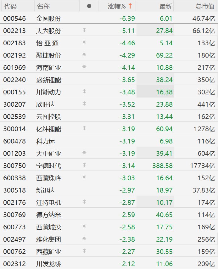 A股锂矿股集体下跌,金圆股份跌超6%