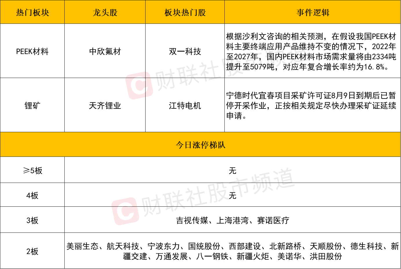 锂矿板块同样全天强势,江特电机、天齐锂业、赣锋锂业、盛新锂能涨停,中矿资源、融捷股份、亿纬锂能、盐湖股份涨幅居前。消息面上,宁德时代8月11日在互动平台表示,宜春项目采矿许可证8月9日到期后已暂停开采作业,正按相关规定尽快办理采矿证延续申请。