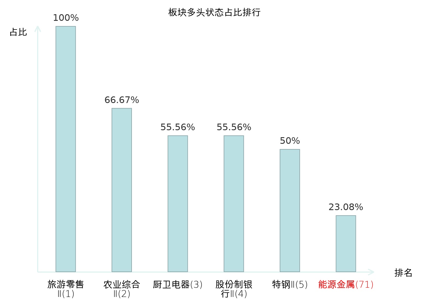 从主力宝信号数据分析,融捷股份所属的能源金属板块中共有3只股票处于主力多头状态,主力多头状态占比在全行业中排名第71位,较昨日上升了42位。排名的提升表明主力对板块整体的看多意愿有所增强,为投资者提供了关于市场情绪和潜在投资机会的参考。全市场所有行业板块中,旅游零售Ⅱ板块的主力多头状态占比最高,位居第一。装修装饰Ⅱ板块名次提升最快,较昨日上升了75位。这些变动揭示了不同行业间主力资金动向的趋势,有助于投资者了解当前市场的动态和趋势。