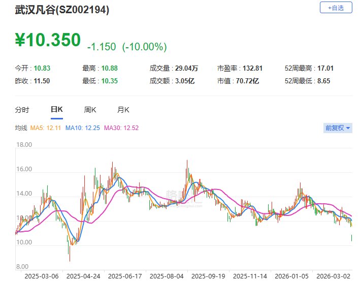 A股异动丨武汉凡谷跌停 股价创逾11个月新低