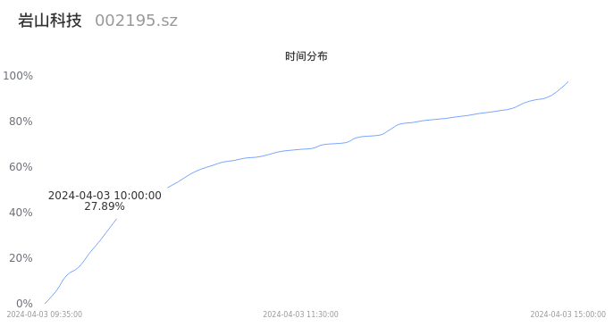 002195岩山科技2024年04月03日成交85.43万手,成交金额2.52亿元,相较昨日缩量7.43万手,换手率1.51%,成交清淡。