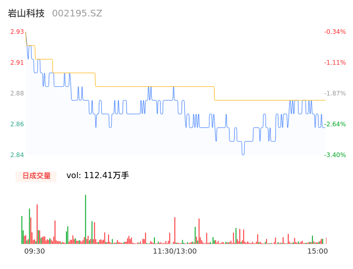 04月10日,岩山科技收报2.87,股价涨幅-2.38%,成交金额3.24亿元,换手率1.99%。