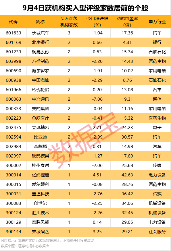 从行业来看,电力设备行业最受青睐,亿纬锂能、天赐材料等15股上榜机构买入评级榜。汽车、机械设备等行业也较受机构关注,分别有14股、12股上榜。