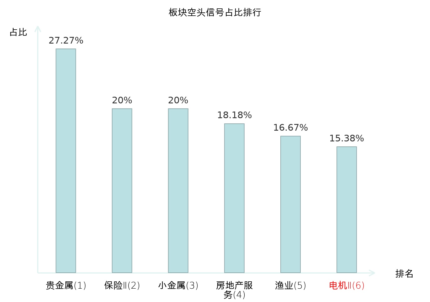 从主力宝信号数据分析,方正电机所属的电机Ⅱ板块中共4只股票发出主力空头信号,主力空头信号占比在全行业中排名第6位,较昨日上升49位。较高的排名表明主力对于该板块整体看空意愿较强,此次排名大幅上升可能反映了主力对该板块态度的显著强化。全市场所有行业板块中主力空头信号占比排名中,贵金属板块位居第一。小金属板块名次提升最快,较昨日上升117位。这些变动揭示了不同行业间主力资金偏好的结构性调整,为投资者识别潜在风险方向提供了客观依据。