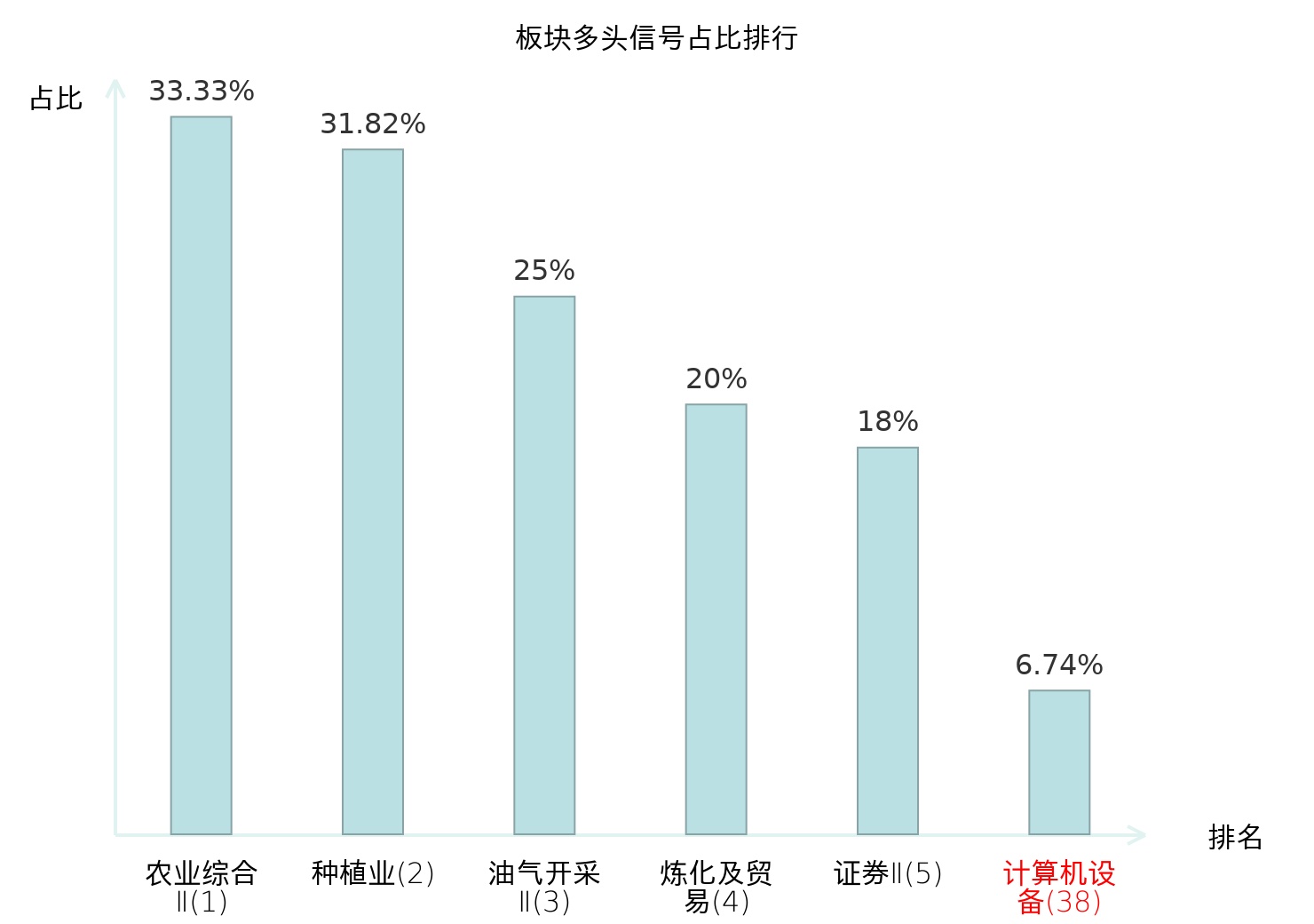 从主力宝信号数据分析,证通电子所在的计算机设备板块中共有6只股票发出主力多头信号,主力多头信号占比在全行业中排名第38位,较昨日上升了57位。排名的提升表明主力对于该板块的买入意愿有所增强,为投资者提供了积极的市场信号。全市场所有行业板块中,农业综合Ⅱ板块的主力多头信号占比最高,位居第一。农业综合Ⅱ板块名次提升最快,较昨日上升了127位。这些变动揭示了不同行业间主力资金动向的趋势,为投资者提供了重要的市场参考。