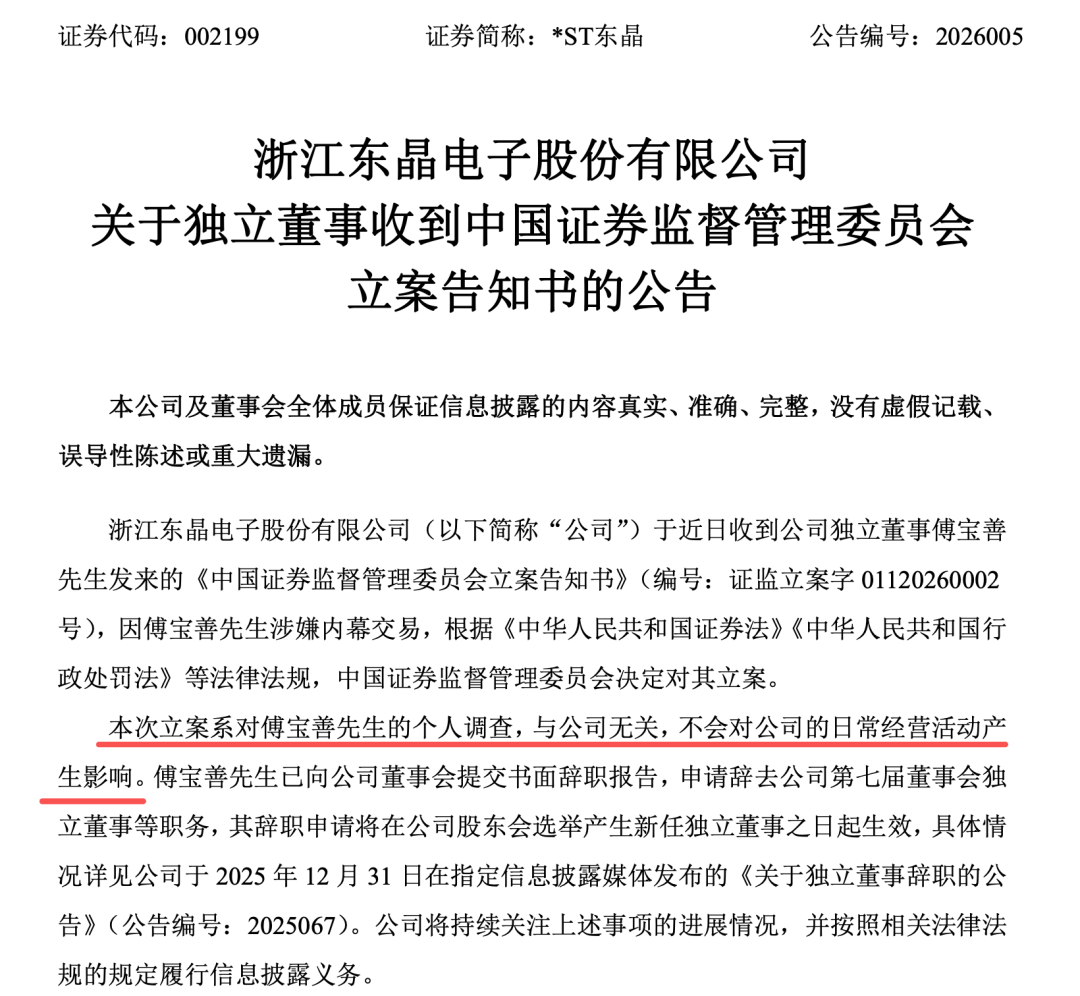 002199,独立董事被证监会立案!涉嫌内幕交易!