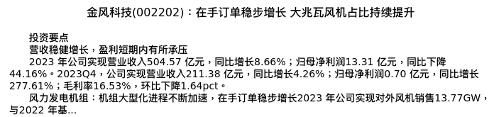 值得注意的是:2024年04月浙商证券的张雷/陈明雨/曹宇分析师,首次发布关于金风科技的研究报告,标题为:金风科技(002202):在手订单稳步增长 大兆瓦风机占比持续提升。