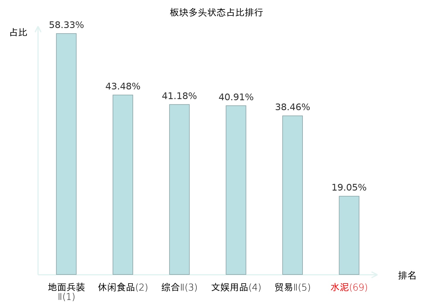 从主力宝信号数据分析,国统股份所属的水泥板块中共有4只股票处于主力多头状态,主力多头状态占比在全行业中排名第69位,较昨日下降65位。较高的排名表明主力对于该板块整体看多意愿较强,而此次排名显著下降可能反映了主力对该板块态度的大幅调整。全市场所有行业板块中,地面兵装Ⅱ板块的主力多头状态占比最高,位居第一;林业Ⅱ板块名次提升最快,较昨日上升90位。这些变动揭示了不同行业间主力资金动向的趋势,为投资者提供了关于市场情绪和潜在投资机会的重要线索。