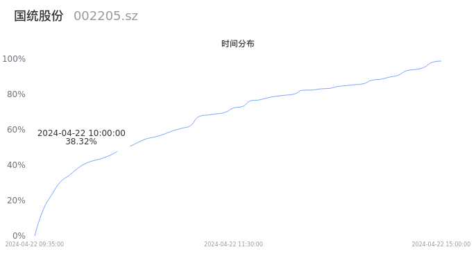 根据成交分布分析,该股票当天放量成交,成交清淡。时间上看,早盘前半小时成交量占据当天总成交量的38.32%;价格上看,成交呈现中间峰。成交分布分析主要研究股票成交的分布特性,不具有预测功能,请知悉。