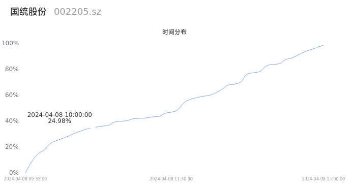 002205国统股份2024年04月08日成交4.99万手,成交金额4045.05万元,相较昨日放量7520手,换手率2.68%,成交清淡。