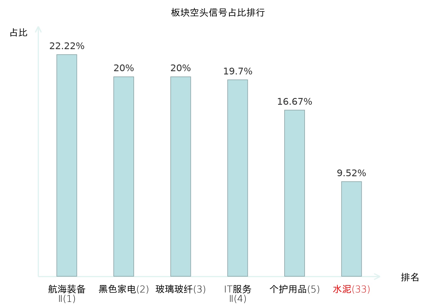 全市场所有行业板块中主力空头信号占比排名中,航海装备Ⅱ板块位居第一。纺织制造板块名次提升最快,较昨日上升107位。