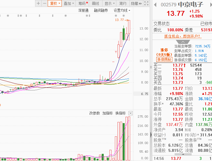 市场情绪:市场热点较为杂乱,个股涨多跌少,全市场超3300只个股上涨。今日共54股涨停,连板股总数9只,27股封板未遂,封板率为67%(不含ST股、退市股)。焦点股方面,高标新通联上演“天地板”行情,市场连板高度压缩至4连板,其中大金融板块弘业期货一字涨停晋级4连板,固态电池概念股大东南T字涨停收获4连板,此外PCB板块的中京电子走出8天5板。