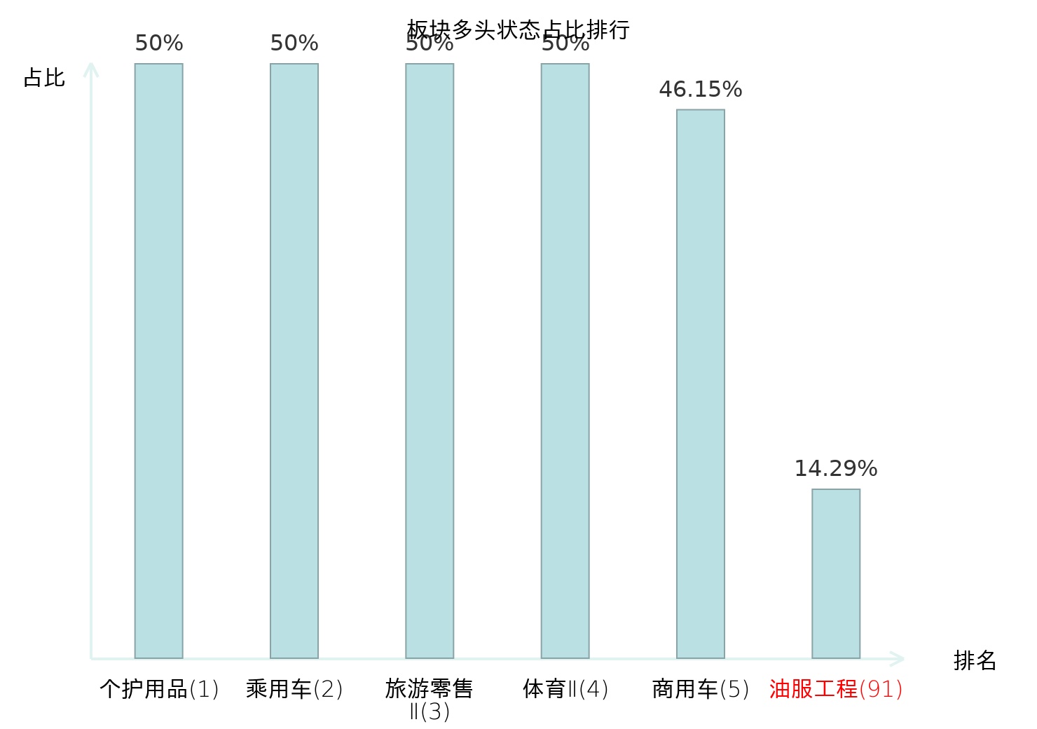 从主力宝信号数据分析,准油股份所属的油服工程板块中共2只股票处于主力多头状态,主力多头状态占比在全行业中排名第91位,较昨日上升8位;排名越高说明主力对于板块整体看多意愿越强;全市场所有行业板块中主力多头状态占比排名中,个护用品板块位居第一;林业Ⅱ板块名次提升最快,较昨日上升94位;这些变动反映了主力资金在不同行业间的分布调整,为投资者评估板块相对吸引力提供了客观参考依据。