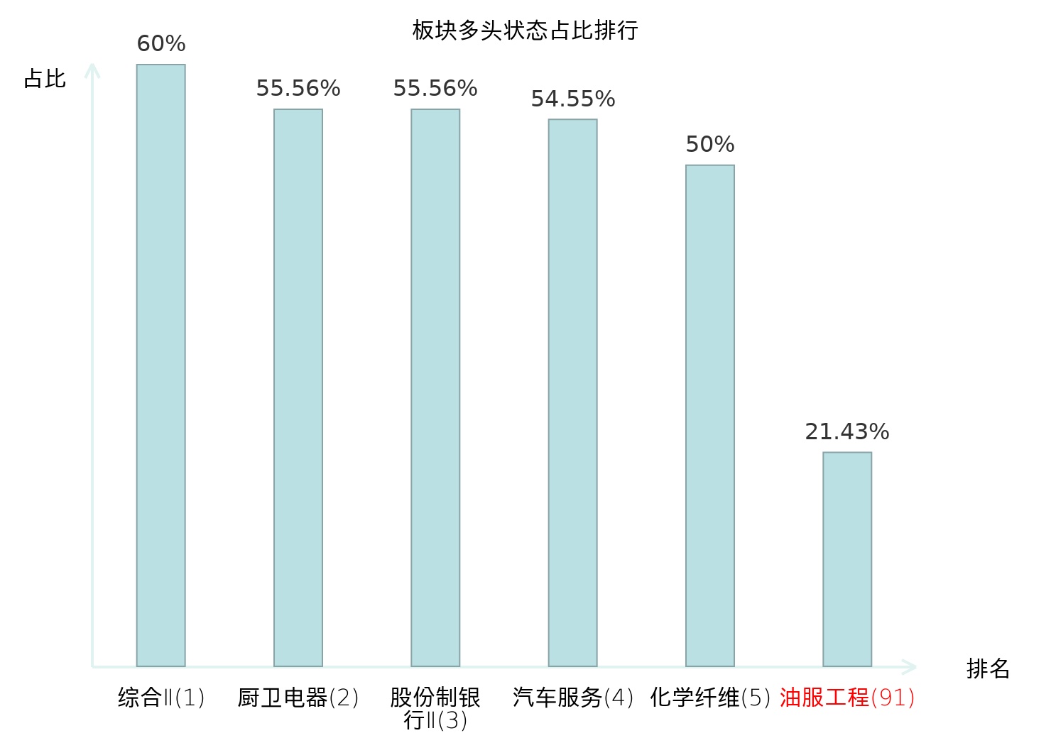 全市场所有行业板块中主力多头状态占比排名中,综合Ⅱ板块位居第一。出版板块名次提升最快,较昨日上升55位。