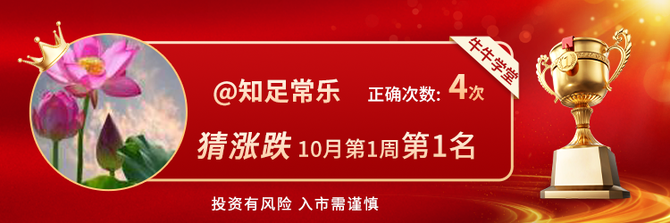 2、大家期待的【猜涨跌】活动已上线,在圈子内点击对话框上方【猜涨跌】了解详情!本周冠军:知足常乐和冉冉升起并列第一;