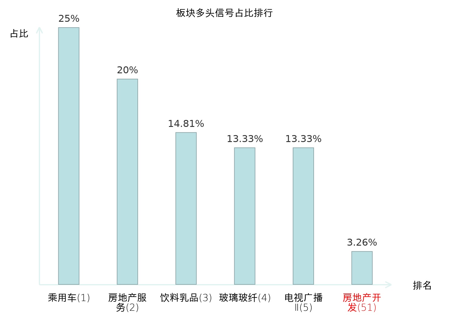 全市场所有行业板块中主力多头信号占比排名中,乘用车板块位居第一。乘用车板块名次提升最快,较昨日上升117位。