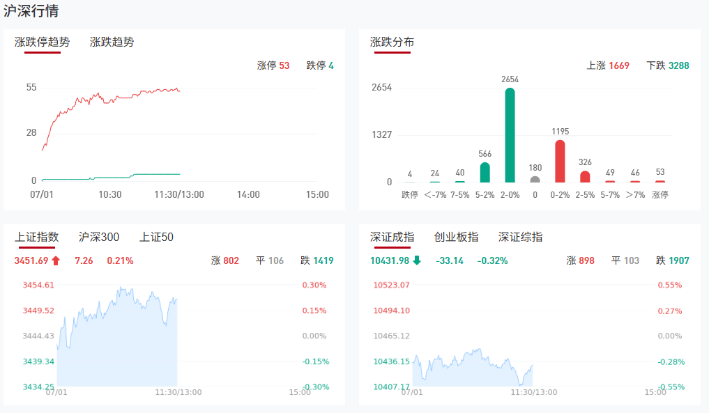 市场早盘震荡分化,三大指数涨跌不一。沪深两市半日成交额9606亿,较上个交易日放量463亿。盘面上热点较为杂乱,个股跌多涨少,全市场超3400只个股下跌。从板块来看,芯片股集体走强,凯美特气等10余股涨停。银行股展开反弹,建设银行等再创历史新高。下跌方面,稳定币概念股持续走低,霍普股份跌超10%;固态电池概念展开调整,英联股份跌停。