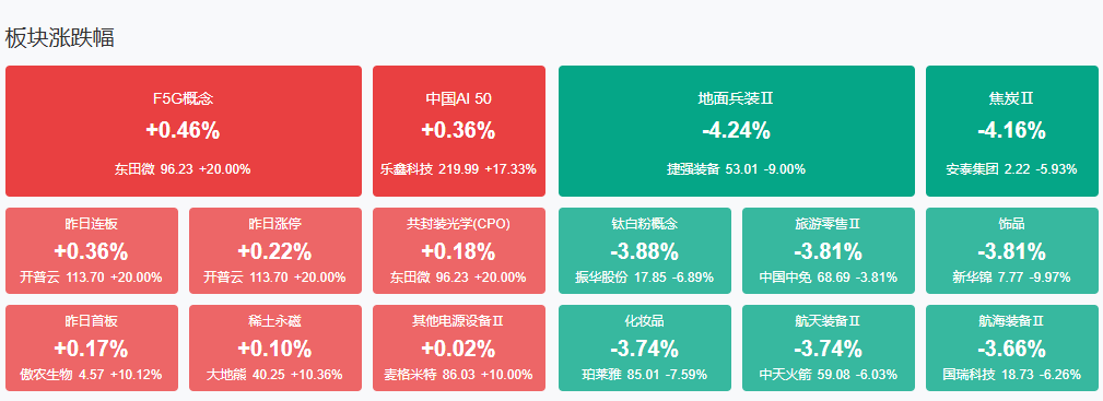 板块方面,CPO、稀土、半导体等板块涨幅居前,房地产、白酒、美容护理、创新药等板块跌幅居前。截至收盘,沪指跌1.76%,深成指涨1.43%,创业板指跌0.69%。
