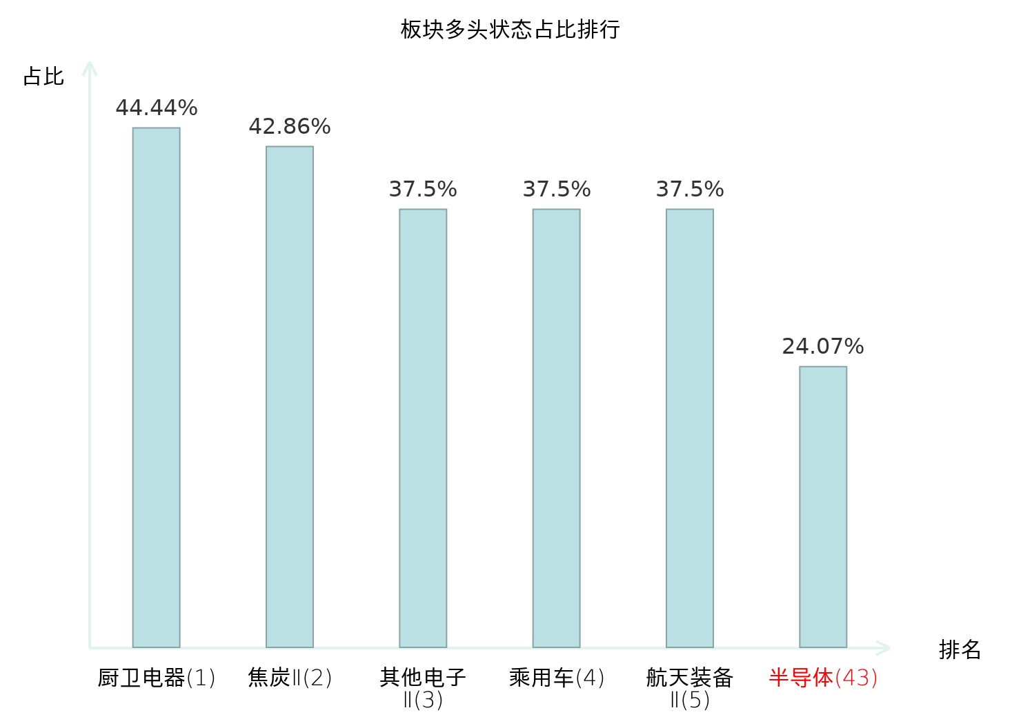 从主力宝信号数据分析,大为股份所属的半导体板块中共有39只股票处于主力多头状态,主力多头状态占比在全行业中排名第43位,较昨日上升了24位。排名的提升表明主力对于该板块的看多意愿增强,这为投资者提供了关于市场情绪和潜在投资机会的重要参考。全市场所有行业板块中,厨卫电器板块的主力多头状态占比最高,位居第一;元件板块名次提升最快,较昨日上升了69位。这些变动揭示了不同行业间主力资金动向的趋势,为投资者提供了重要的市场动态信息。