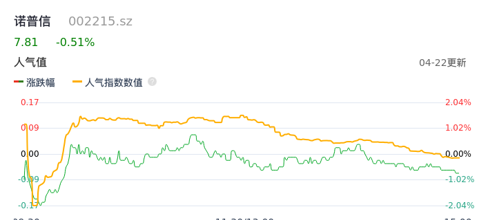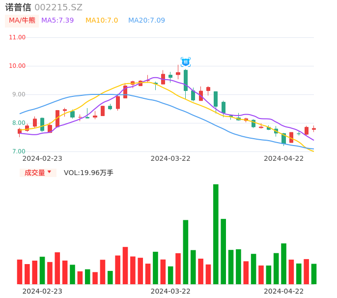 04月22日,诺普信收报7.81,股价涨幅-0.51%,成交金额1.56亿元,换手率2.51%。