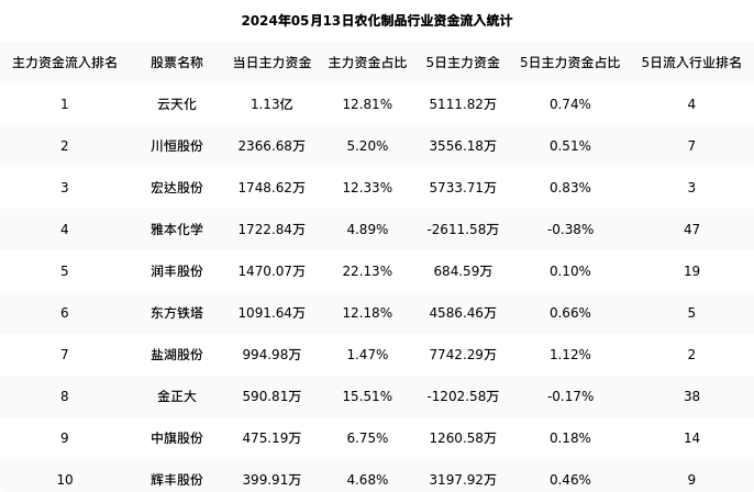从主力资金流向来看,农化制品行业今日主力资金流入25.27亿元,在所有申万二级行业中排名:111/131。