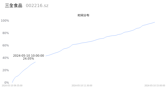 002216三全食品2024年05月10日成交3.44万手,成交金额4468.80万元,相较昨日缩量9313手,换手率0.55%,成交清淡。