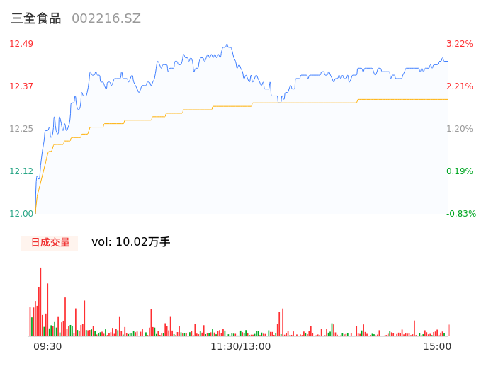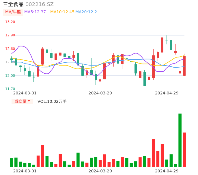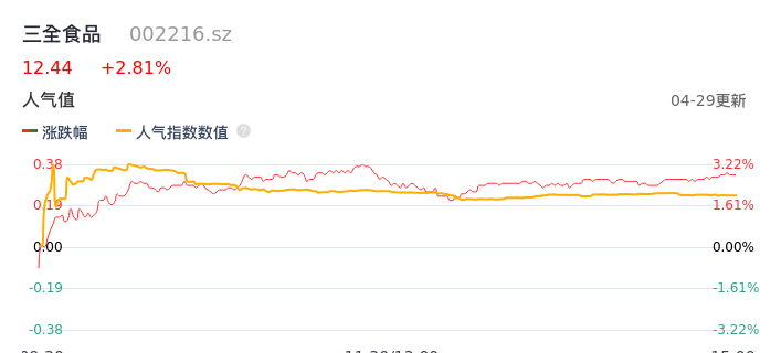 04月29日,三全食品收报12.44,股价涨幅2.81%,成交金额1.24亿元,换手率1.59%。