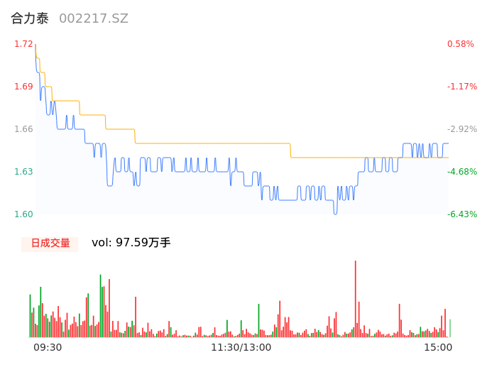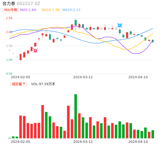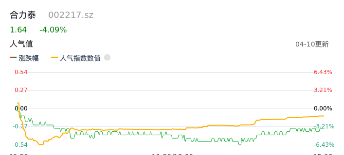 04月10日,合力泰收报1.64,股价涨幅-4.09%,成交金额1.60亿元,换手率3.13%。