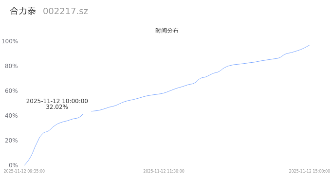 002217合力泰2025年11月12日成交88.81万手,成交金额2.80亿,相较昨日缩量28.61万手,换手率1.56%,成交清淡。