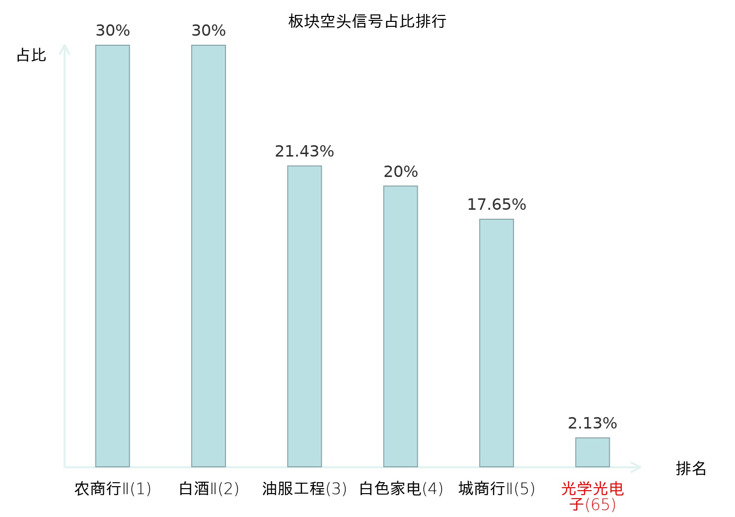全市场所有行业板块中主力空头信号占比排名中,农商行Ⅱ板块位居第一。消费电子板块名次提升最快,较昨日上升95位。