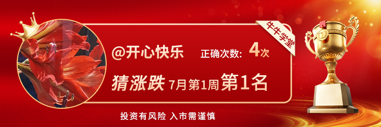 大家期待的【猜涨跌】活动已上线,在圈子内点击对话框上方【猜涨跌】了解详情!本周冠军:开心快乐
