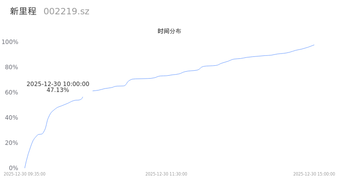 002219新里程2025年12月30日成交47.97万手,成交金额1.03亿,相较昨日放量6.47万手,换手率1.47%,成交清淡。