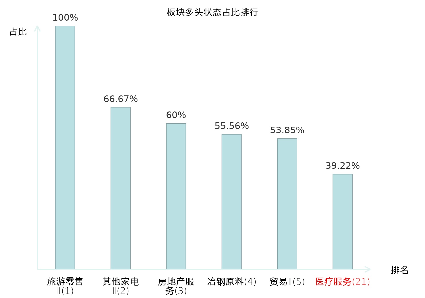 全市场所有行业板块中主力多头状态占比排名中,旅游零售Ⅱ板块位居第一。保险Ⅱ板块名次提升最快,较昨日上升65位。