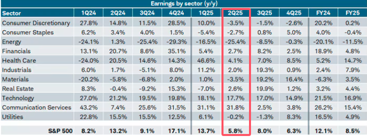 根据LSEG的统计,这两大板块在二季度,预计也将实现标普500指数11个行业板块中最大的同比盈利增幅:科技板块盈利料将同比增长17.7%,通信服务板块增长31.8%。而能源板块的业绩情况料将垫底(-25%)