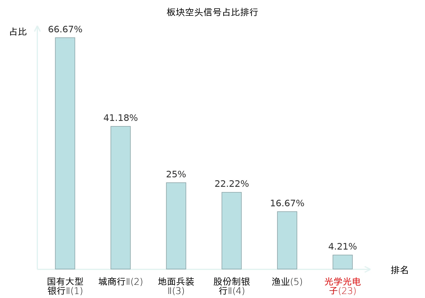 全市场所有行业板块中主力空头信号占比排名中,国有大型银行Ⅱ板块位居第一。小金属板块名次提升最快,较昨日上升117位。