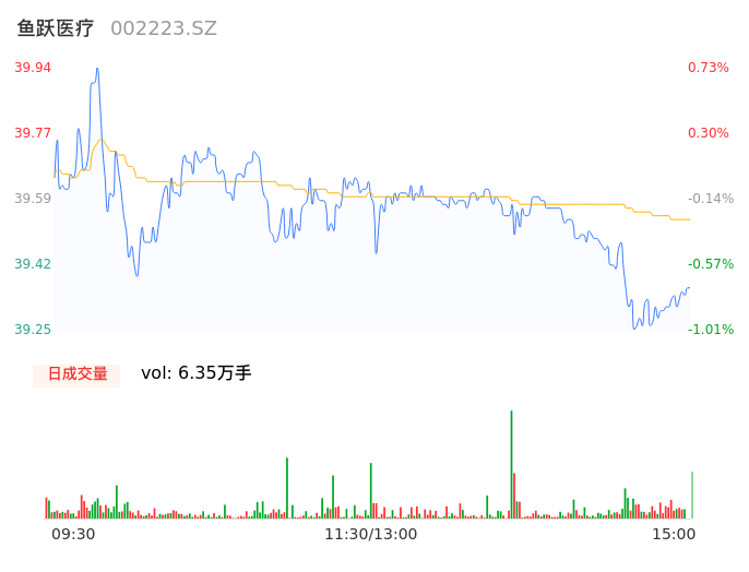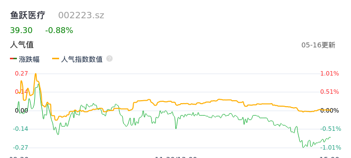 05月16日,鱼跃医疗收报39.30,股价涨幅-0.88%,成交金额2.51亿元,换手率0.68%。