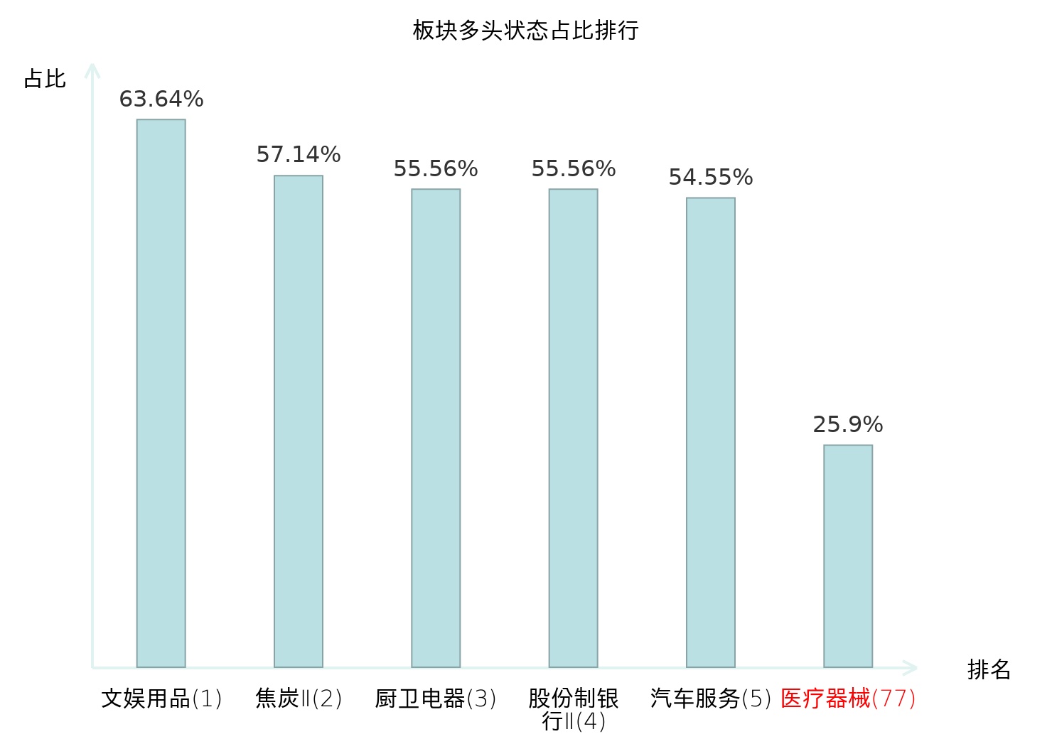 全市场所有行业板块中主力多头状态占比排名中,文娱用品板块位居第一。焦炭Ⅱ板块名次提升最快,较昨日上升54位。