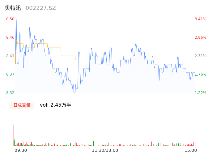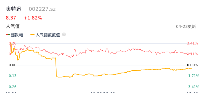 04月23日,奥特迅收报8.37,股价涨幅1.82%,成交金额2057.89万元,换手率0.99%。