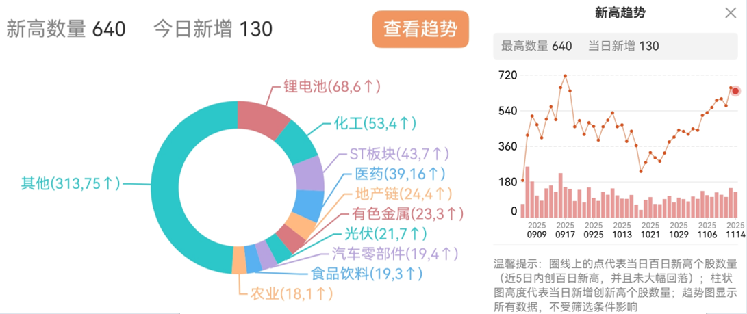 从百日新高去看,目前新能源板块是当下的主线!锂电池>化工>ST板块>医药