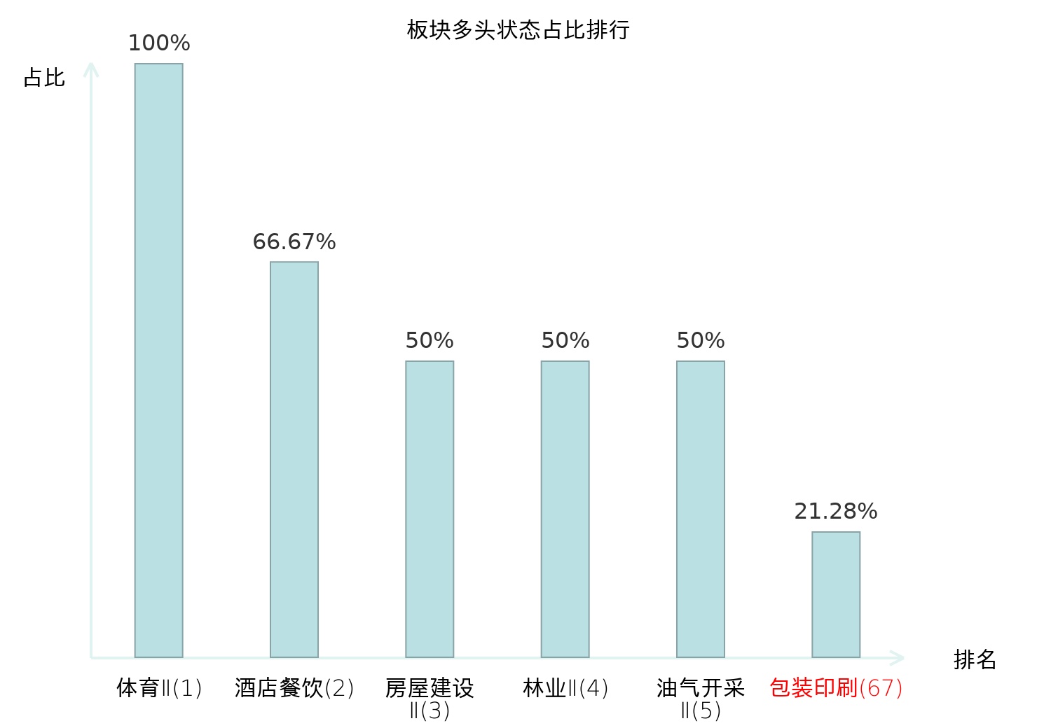 全市场所有行业板块中主力多头状态占比排名中,体育Ⅱ板块位居第一。国有大型银行Ⅱ板块名次提升最快,较昨日上升100位。