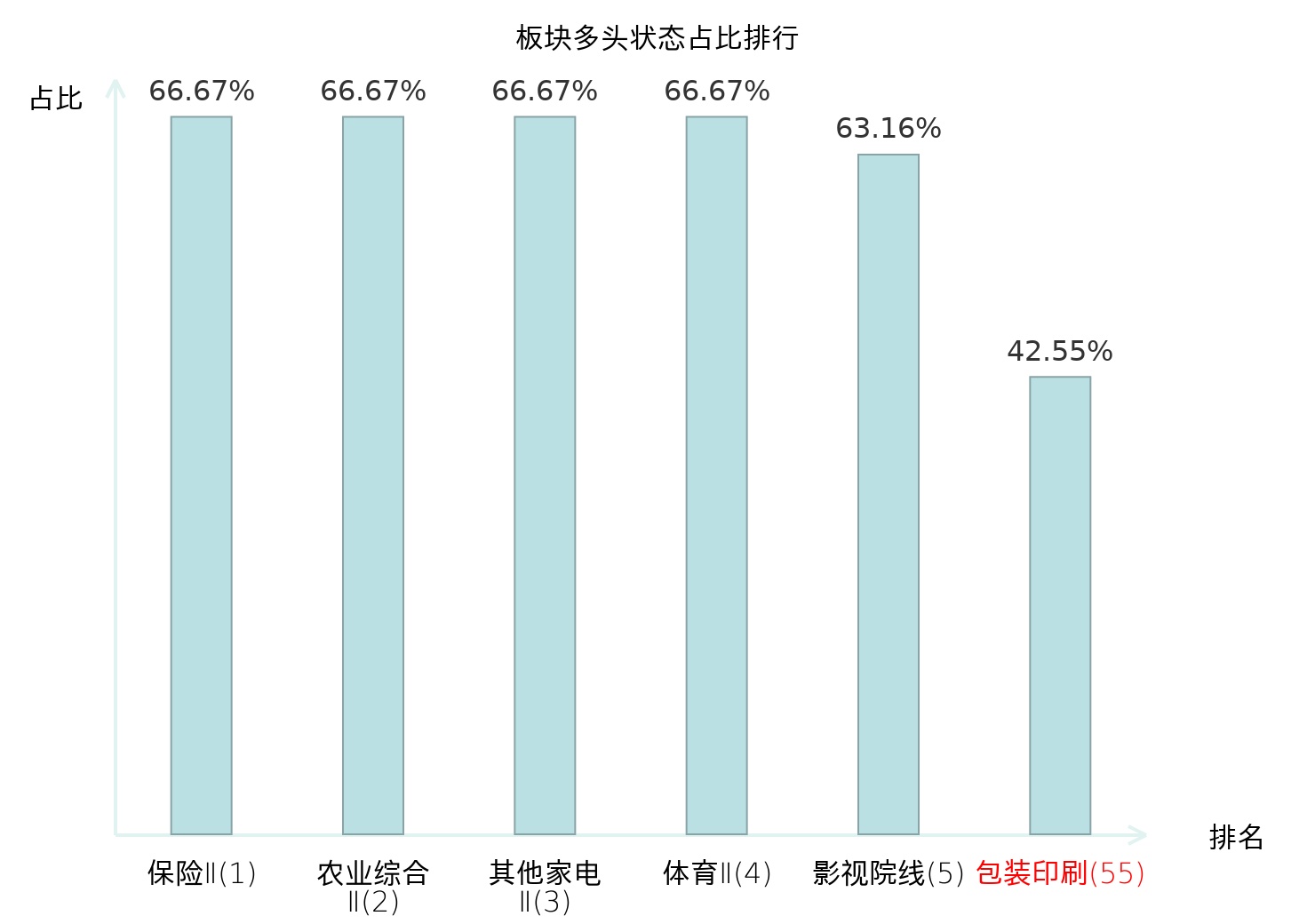 全市场所有行业板块中主力多头状态占比排名中,保险Ⅱ板块位居第一。冶钢原料板块名次提升最快,较昨日上升53位。