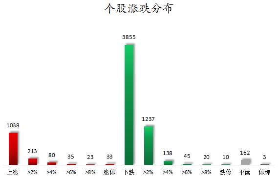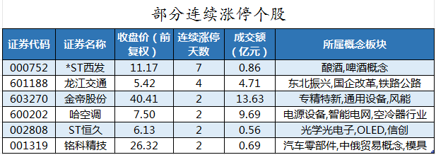 截至收盘,沪深两市合计1038只个股上涨,3855只个股下跌,平盘个股162只,停牌的个股3只。不含当日上市新股,共有33只个股涨停,10只个股跌停。连续涨停天数看,*ST西发已连收7个涨停板,连续涨停板数量最多。